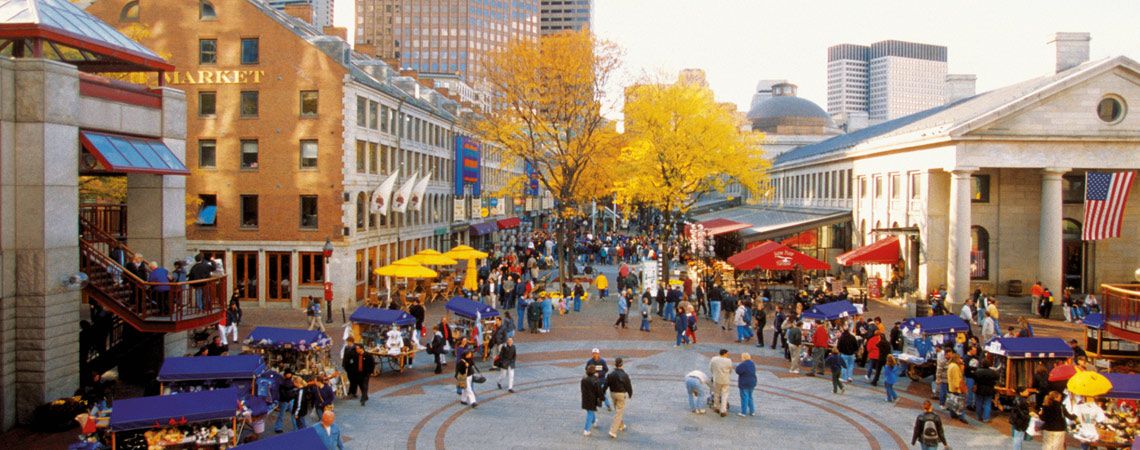Faneuil Hall Marketplace not only captures Boston's history but also offers shops and many great restaurants, bars, and lounges.