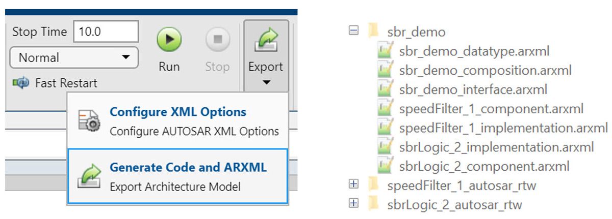 设计验证通过后,可以从软件组合直接生成AUTOSAR代码和ARXML接口描述文件。从ARXML文件架构中可以看到数据类型和接口类型等共用元素在组合级统一生成。