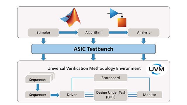 ASIC Testbench for HDL Verifier ist ein Add-on, mit dem es HDL Verifier ermöglicht wird, Testumgebungskomponenten aus MATLAB oder Simulink für Universal Verification Methodology (UVM)- oder SystemVerilog-Umgebungen zu generieren.