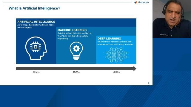 Wenn Sie Machine-Learning-, Deep-Learning- oder Reinforcement-Learning-Workflows nutzen, können Sie die Entwicklungszeiten mithilfe von vorgefertigten Algorithmen und Daten, die mit MATLAB und drahtlosen Kommunikationsprodukten generiert wurden, verkürzen. Sie können ganz einfach bestehende Deep-Learning-Netze außerhalb von MATLAB nutzen, Training, Tests und Verifikation Ihrer Entwürfe optimieren und die Bereitstellung Ihrer KI-Netze auf eingebetteten Geräten, Unternehmenssystemen und in der Cloud vereinfachen.