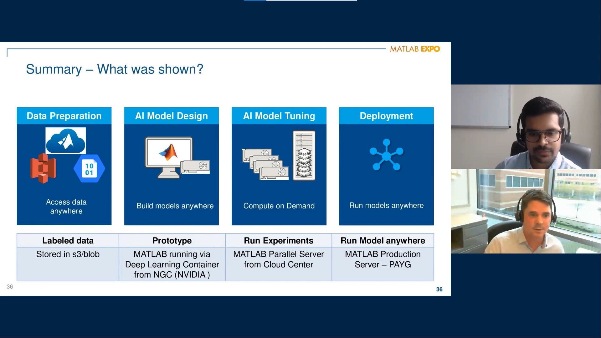 Avec MATLAB et Simulink, vous pouvez créer des applications d'imagerie médicale basées sur le cloud pour le SaaS (Software-as-a-Service) et l'IoT de santé, avec des fournisseurs publics tels qu'AWS®, Azure®, ou NVIDIA® GPU Cloud. Vous pouvez créer des applications web utilisables dans un navigateur pour partager vos applications avec d'autres personnes, à des fins de collaboration et de validation externe. Vous pouvez également utiliser le cloud afin d'augmenter les performances de votre application d'imagerie pour le Deep Learning et d'autres tâches exigeantes en ressources de calcul.