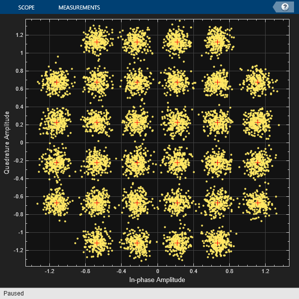 for i = 1:2 cd = comm.ConstellationDiagram(ReferenceConstellation=refConst{i}, ... ShowReferenceConstellation=true); cd(rxSym{i}) end