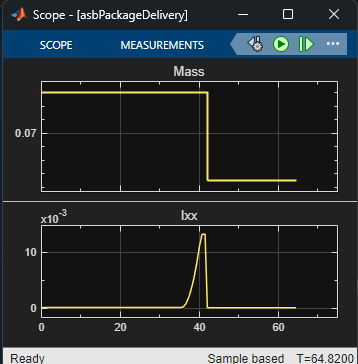 This example builds upon on the model described in the UAV Package Delivery (UAV Toolbox) example, providing a variable mass model for simulating package dropoff dynamics. It also provides additional details on the plant model used to simulate the 6DOF vehicle dynamics.