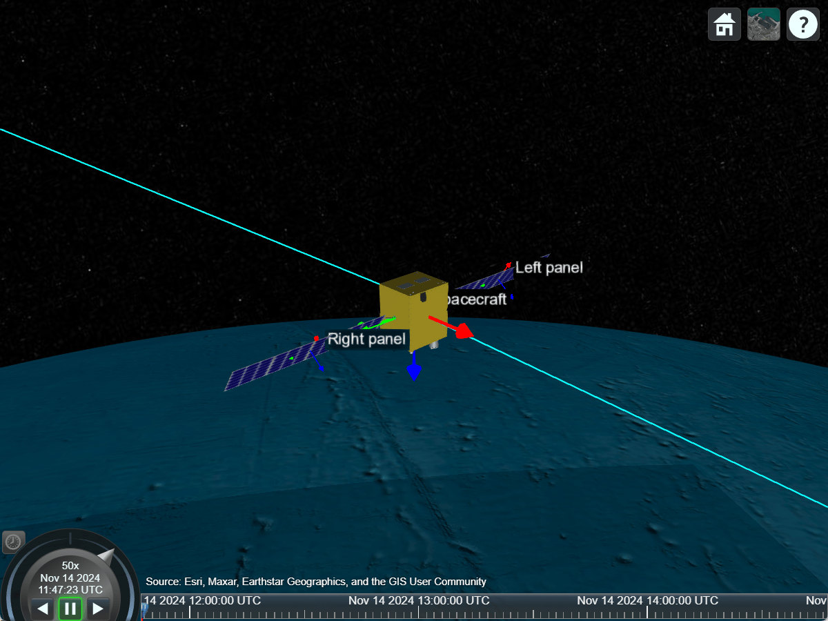 The left and right Solar panel subsystems calculate the position of the panels in ICRF. Their centers of mass is located 2.5 meters from the center of mass of the spacecraft bus along the body-y axis.