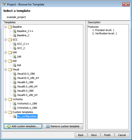If your compiler does not appear in the list of predefined templates, select Baseline_C or Baseline_C++.