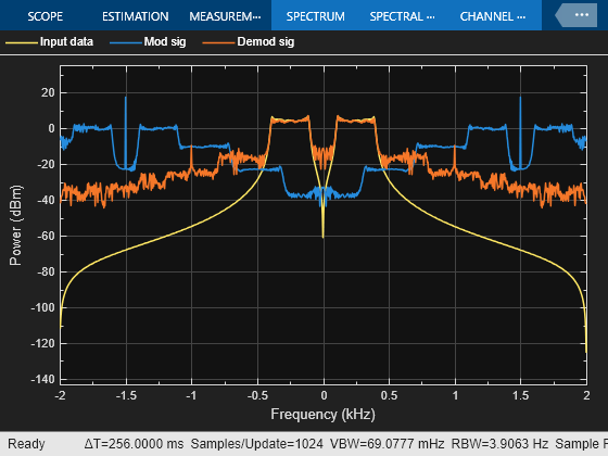 The PM Modulator Passband block modulates a signal using phase modulation. The output is a passband representation of the modulated signal. The frequency of the output signal varies with the amplitude of the input signal. Both the input and output signals are real scalar signals.