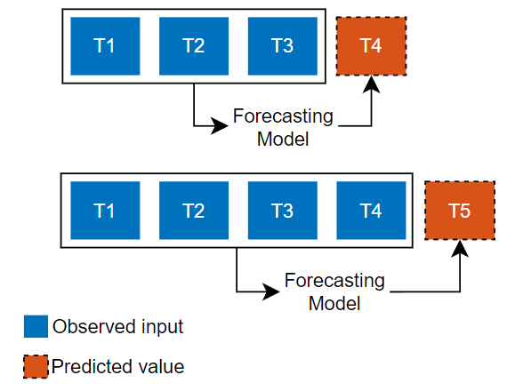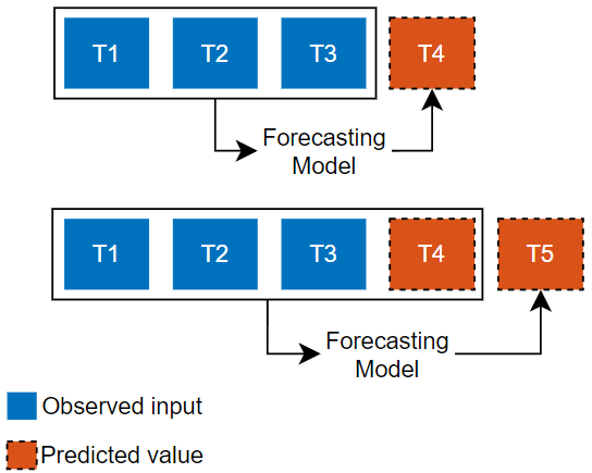 Predict the next time step in a sequence using only the input data. When making predictions for subsequent time steps, you collect the true values from your data source and use those as input. Use this type of prediction when you have true values to provide to the model before making the next prediction.