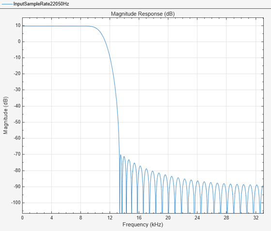 filterAnalyzer(firInterp,FilterNames="InputSampleRate22050Hz")