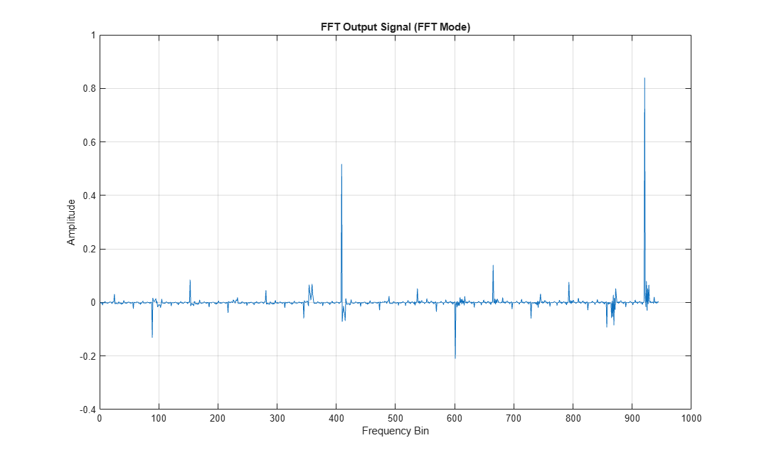 FFTOutput = squeeze(dataOut(:,:,validOut)); figure; plot(real(FFTOutput(:))); xlabel('Frequency Bin'); ylabel('Amplitude'); title('FFT Output Signal (FFT Mode)'); grid on;