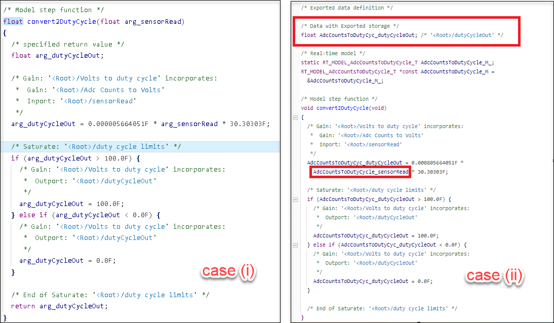 ImportedExternandExportedGlobalstorage class for inports and outports, respectively. In this case the output port is defined as the global variabledutyCycleOut.