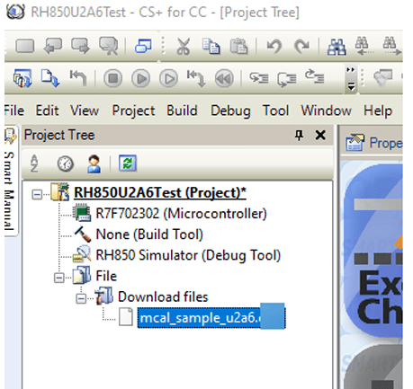 6. Locate the folder containing .abs file generated by Simulink, then drag it into the CS+ workspace under Download files. The file will appear in the list as shown below.