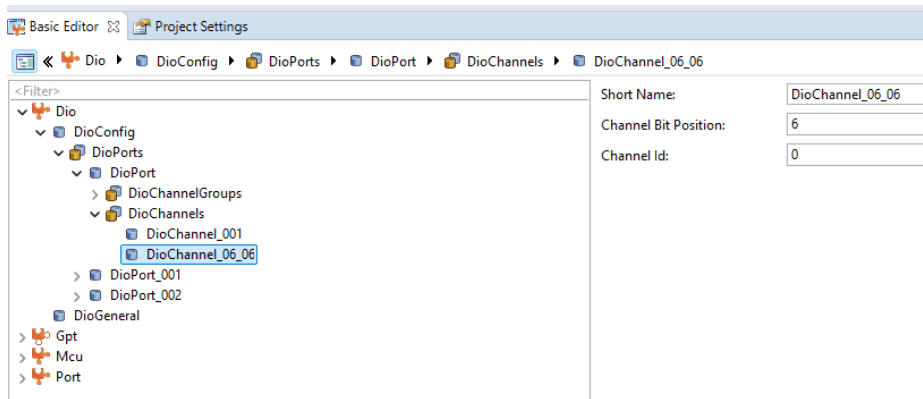 • A DIO channel with the short name DioChannel_06_06 is defined.
