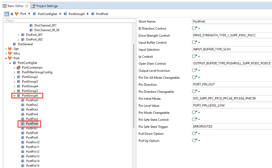 • PortPin6 of PortGroup6 is configured