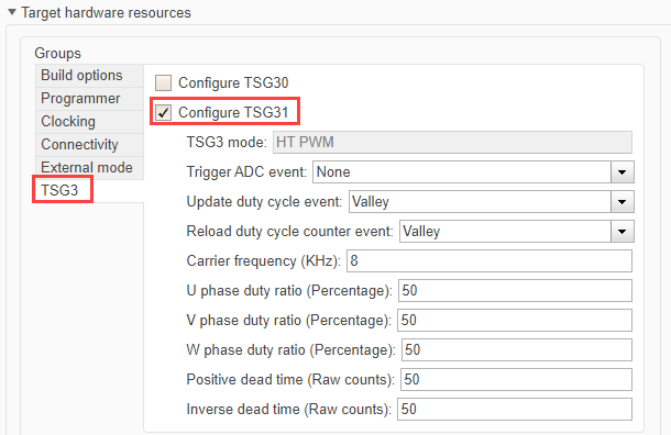 • Generate a hardware TSG3 signal using the TSG31 timer module.