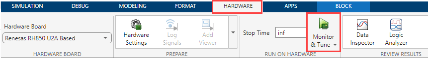 In the Simulink toolstrip, from the Hardware tab, click Monitor & Tune.