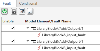 If you add faults to a block in a library, all new instances of the linked library block contain the faults from the library block. Copy Faults from Model Libraries. However, if you modify or add additional faults to the library block, you must resynchronize the model for the linked library blocks to contain the new or updated faults.