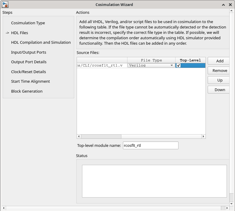 . This module is the Verilog/VHDL module you use for cosimulation. If you do not seercosflt_rtl