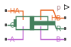 The figure shows the key components of the actuator. Ports A and B represent the gas chamber inlets. Port R represents the translating actuator piston and port C represents the actuator case. Ports HA and HB represent the thermal interfaces between each gas chamber and the environment. The moving piston is adiabatic.
