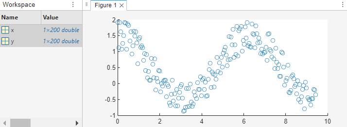 View the name, value, size, class, and other statistics for each variable in the workspace.