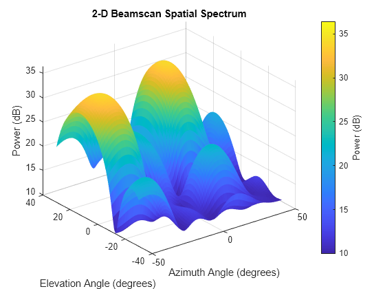 System object™ calculates a beamscan 2-D spatial spectrum estimate for any Phased Array System Toolbox™ array. The object estimates the incoming signal spatial spectrum using a
