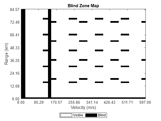 creates a blind zone map BZM = blindzonemap(R,V,PRF,fc,rmin,vmin)BZM for a pulse-Doppler radar transmitting at