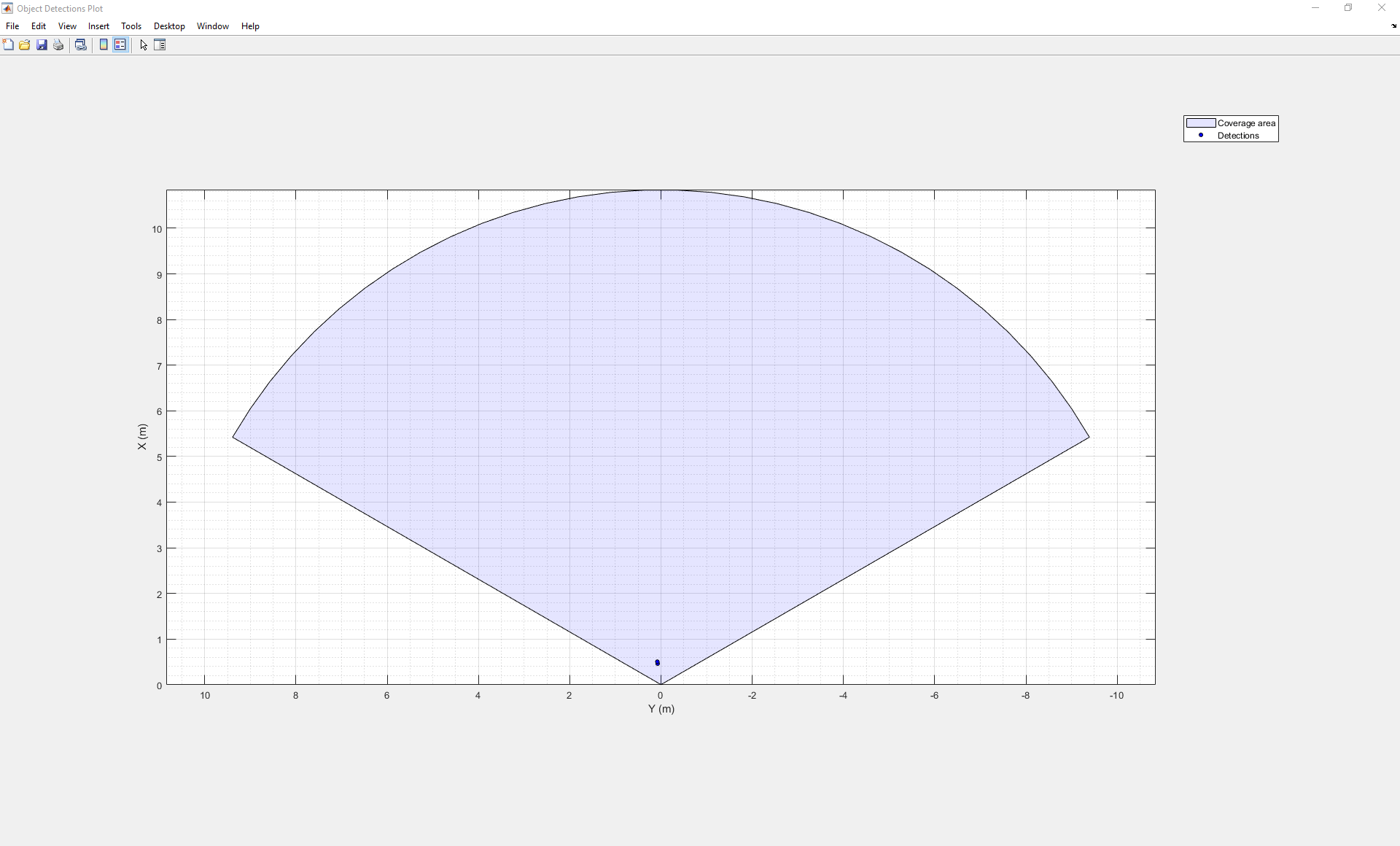 This image shows the output of the code snippet where there is only one object in front of the radar.
