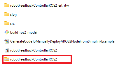 Once the code generation completes, a robotFeedbackControllerROS2.tgz which contains the package source code gets written to folder as compressed tgz file.