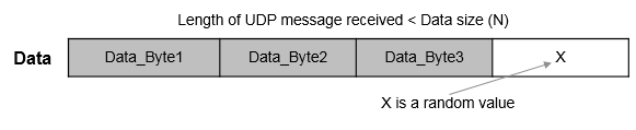 With each sample, the block outputs the data bytes of a UDP message as a data vector of the size that you specify in the Data size (N) parameter.