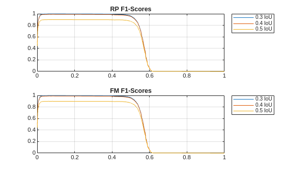 For the training options, use a SGDM optimizer with a minibatch size of 20 and train for 30 epochs. We set the L2 regularization metric value to 0.1 and use the mAPObjectDetectionMetric metric to track the mean average precision (mAP) during training. Set the overlap threshold to be 0.3. Output the trained network with the best mean average precision metric. To train the network, set doTraining equal to true. Training with this data takes about 1 hour with a NVIDIA Titan V GPU with a compute capability of 7.0.