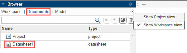 If your browser is in the Workspace View, click Documents and double-click Datasheet1 instead.
