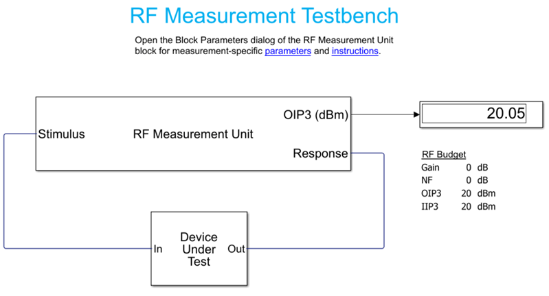 The same measurements can be performed using the RF Budget Analyzer app to automatically generate the model and testbench.