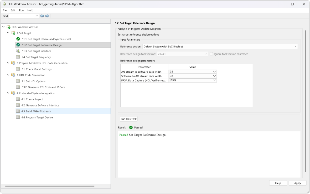 3. In step 1.2, set Reference design to Default System with SoC Blockset.
