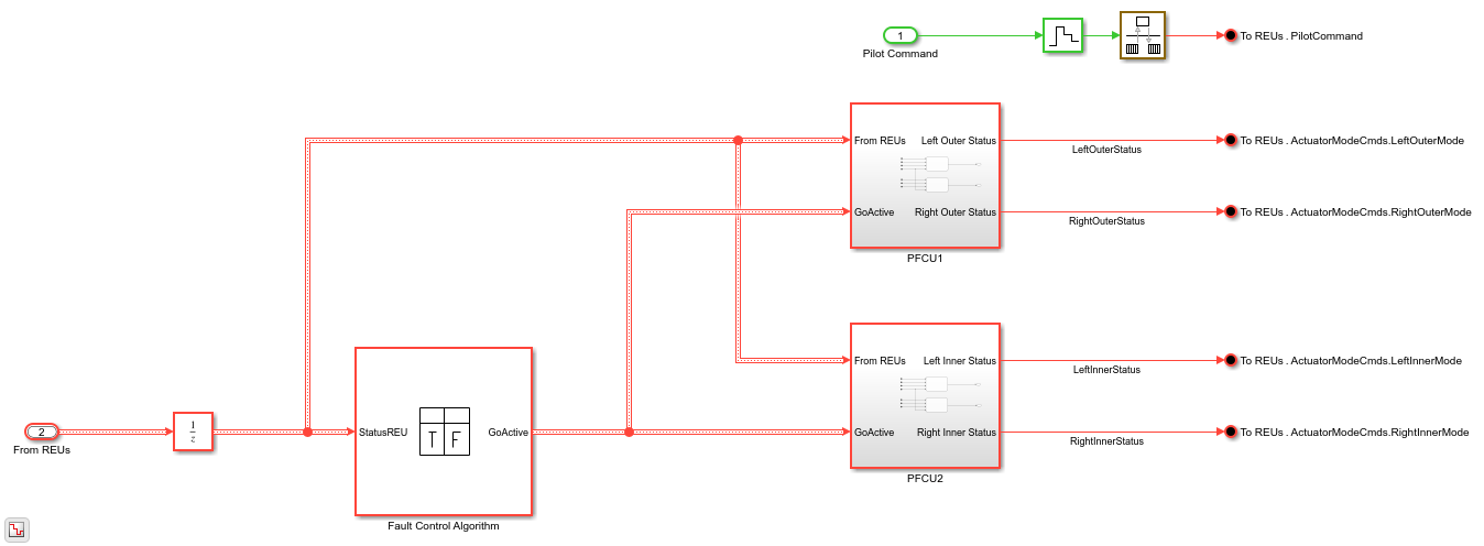 If actuators on opposite sides experience faults, the PFCC keeps the plane operable by activating both PFCUs. For example, if the left inner and right outer actuators have a fault, both PFCUs remain active.