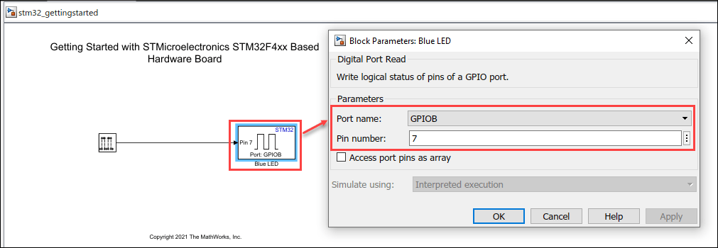Task 2 - Configure STMicroelectronics STM32CubeMX Project in Simulink to Make LED Blink at Single Rate