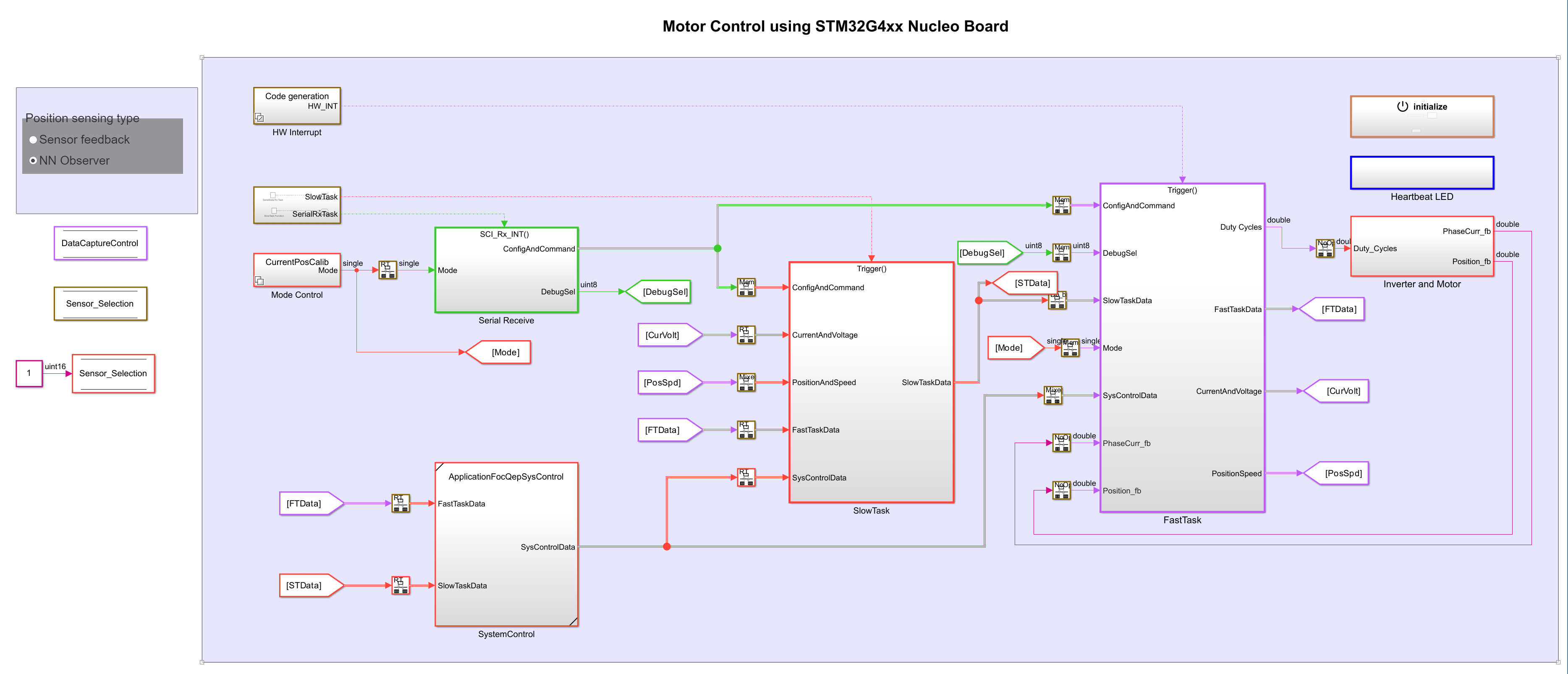 STM32xxTargetMotorControlData). Alternatively, you can compute the ADC offset values and update it manually in the model initialization scripts. For instructions, see Run 3-Phase AC Motors in Open-Loop Control and Calibrate ADC Offset (Motor Control Blockset).To use the trained neural network for position estimation, ensure that you select NN Observer in the Position sensing type section of the target model.