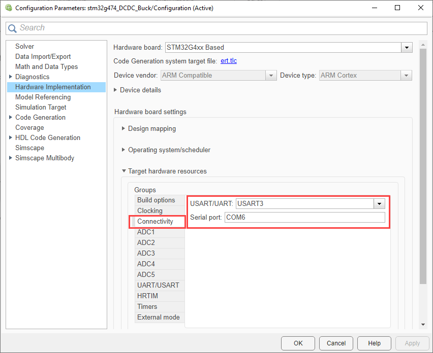 • stm32_DCDC_Buck_host_model > Serial Configuration