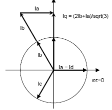 This block converts balanced three-phase quantities into balanced two-phase quadrature quantities. The transformation implements these equations