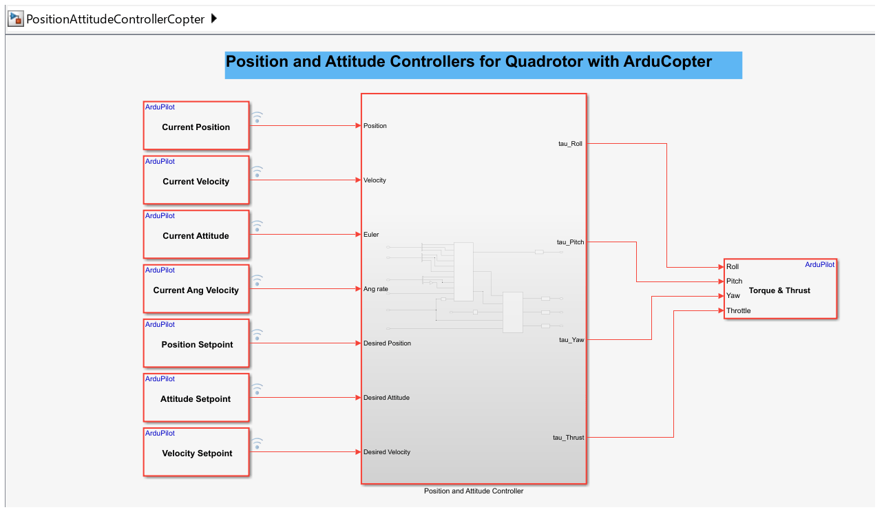 Open the PositionAttitudeControllerCopter.slx model.