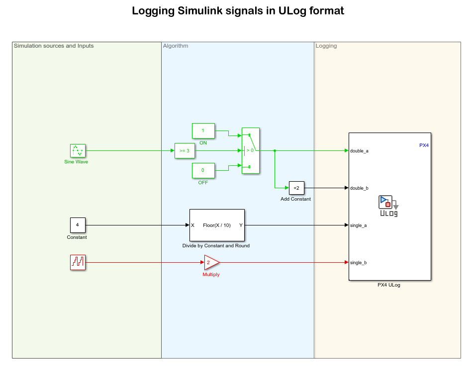 The UAV Toolbox Support Package for PX4 Autopilots supports logging of signals from your Simulink model on Pixhawk hardware in the ULog format. Signal logging enables you to monitor the behavior of the signal and perform analysis of historical data.
