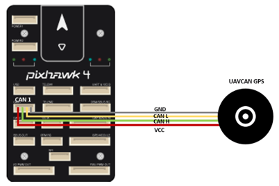 Connect the UAVCAN GPS module to the CAN1/CAN port of the PX4 Autopilot and power up the PX4 Autopilot.
