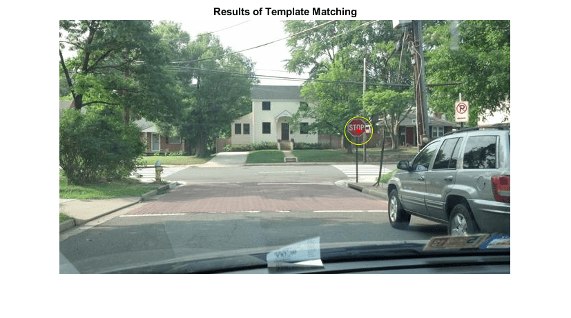 The Template Matching block finds the best match of a template within an input image. The block computes match metric values by shifting a template over a region of interest or the entire image, and then finds the best match location.
