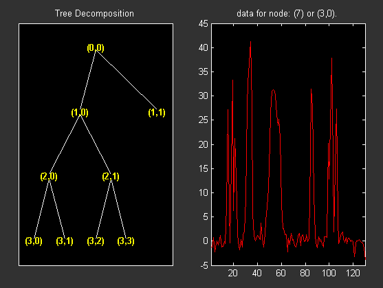 load noisbloc x = noisbloc; t = wpdec(x,3,'sym4'); plot(t); % Change Node Label from Depth_position to Index and % click the node (0). You get the following plot.