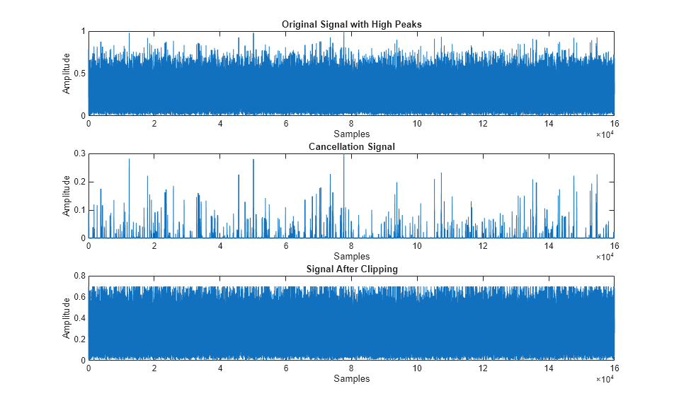 There are different methods to implement CFR, such as, clipping, clipping and filtering, peak windowing, peak cancellation, and constrained clipping. This example uses the clipping method to implement CFR.