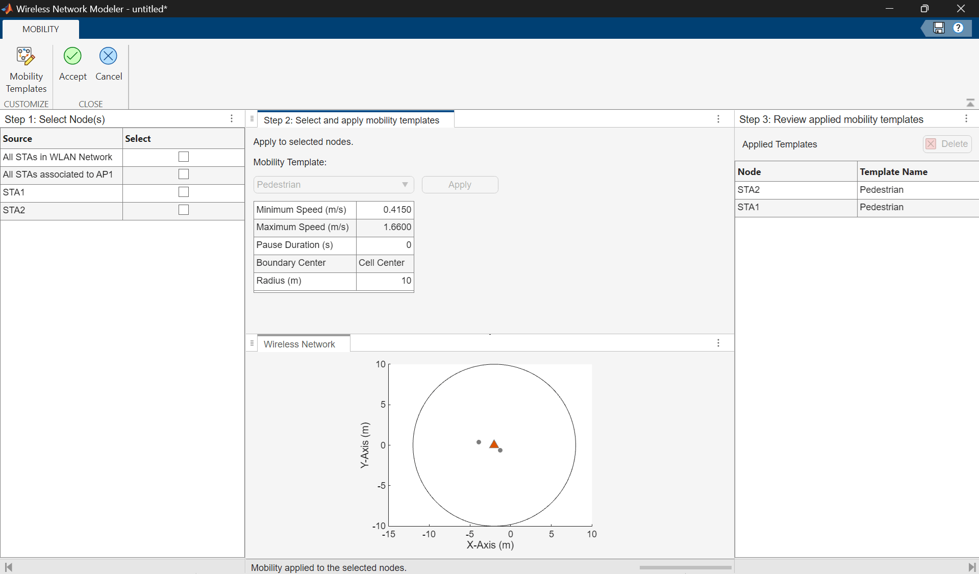 Add a mobility model to the station nodes by following these steps.