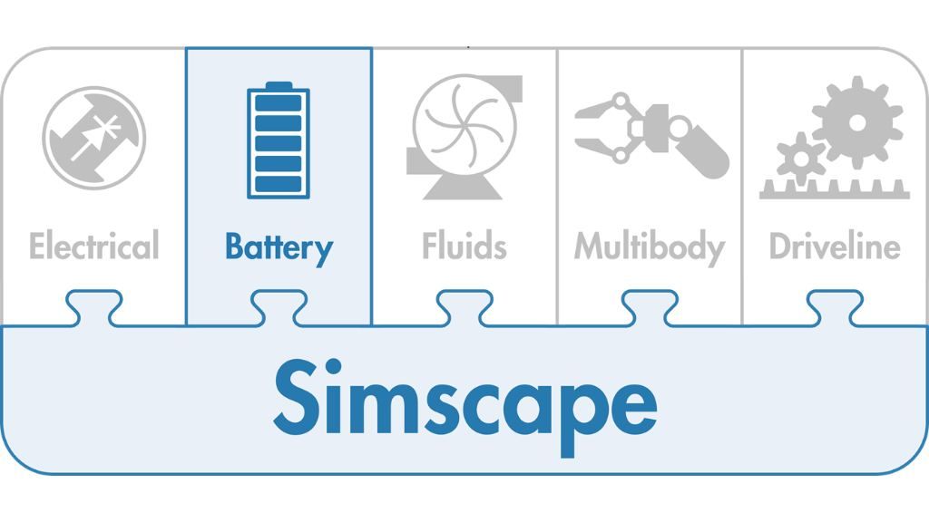 Simscape Battery provides design tools and parameterized models for developing battery systems. You can tune battery cell behavior to match measured data, run virtual tests of battery pack architectures, design battery management systems, and evaluate battery system behavior across normal and fault conditions.